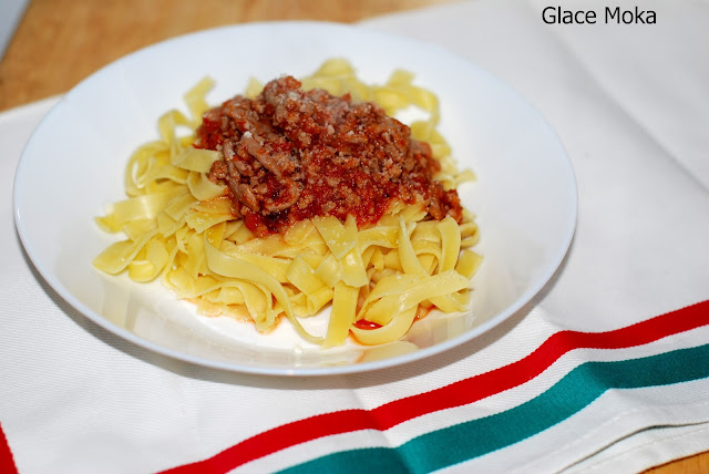 En esta ocasión he hecho una modificación a mi receta,  tiene la misma salsa boloñesa pero con tallarines en vez de con pasta de lasaña.